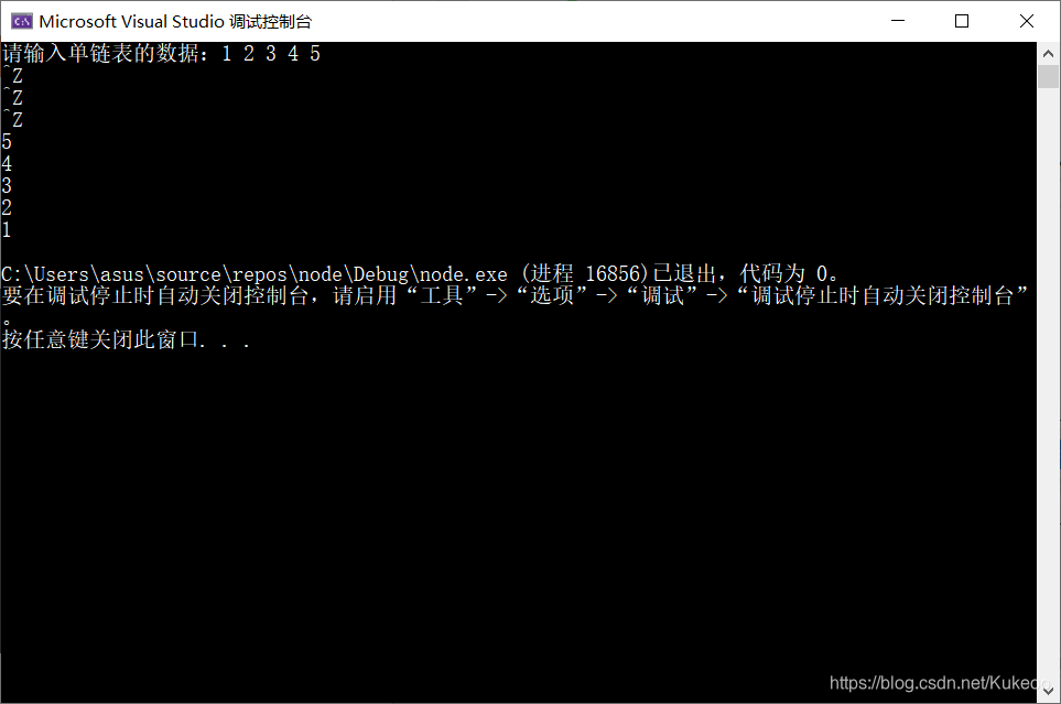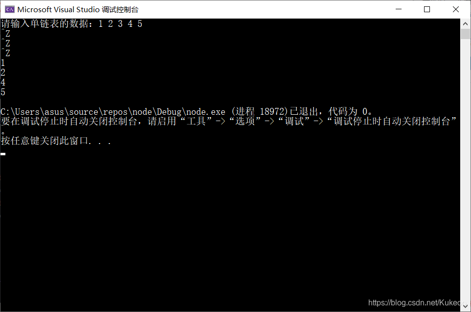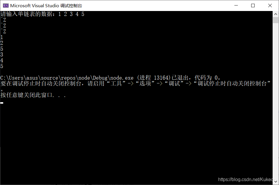 只要输入的不是EOF,就一直插入结点,直到程序读到一个EOF为止。